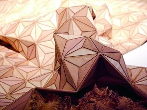 木头可以制成什么?钥匙扣、铅笔、尺子,或者更大的房子。可是你想过用木头做纺织品吗?可是木头那么硬,怎么可能做成柔软纺织品呢!德国设计师Elisa Strozyk就真的用这些坚硬的木块做成了柔软有弹性的纺织品。这种纺织品实际上是把手工或者激光切割的木片附着在纺织品上而组成的。据说Elisa Strozyk花了好几个月的时间对不同类型的木材进行试验,最终她选择了厚度仅有0.6毫米的胶合板。但是并不是所有木质都适合如此切割和黏合,Elisa Strozyk 发现橡树的材质就太脆,樱桃和枫木的材质则恰到好处。目前Elisa Strozyk已经创造出了木地毯、床罩、桌布以及木质衣服。