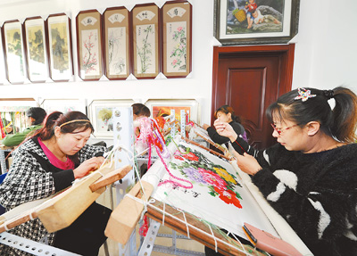 目前,当地的手工刺绣产业已形成了小基地、大辐射的局面,带动周边4000多妇女就业,每年人均增收超过1万元。