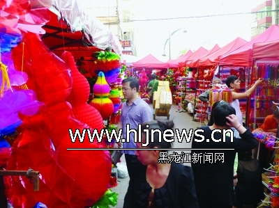 17日,记者在道外区丰润街、南小六道街、南八道街看到,店主们把漂亮的纸葫芦挂在门前招揽生意。记者随后来到了南小六道街94号“葫芦大王”邹宝忠的作坊,这是一家集印染、制作、组装全套制作流程于一体的纸葫芦作坊。