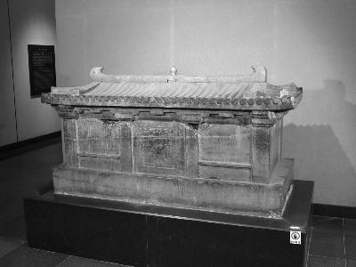 在对古墓的进一步挖掘过程中,考古人员发现了一具完整的石椁。打开石椁,一具雕刻精美、堪称石雕艺术品的仿殿堂石棺跃入眼帘。石棺平面呈长方形,是3间有浮雕的房屋形状,长1.92米、宽0.89米、高1.22米。棺盖由整块石头雕刻而成,盖下部分由6块石块镶为一体,中间开门,两侧开窗,四周刻有斗拱、门窗、瓦当,并线刻有青龙、朱雀、侍从等图案,俨然是一座隋代歇山式建筑(古建筑屋顶最常见的构造方式之一。即由前后2个大坡檐、两侧2个小坡檐及2个垂直的等腰三角形墙面组成,因交出9个脊,又称九脊殿或汉殿、曹殿,这种屋顶多用在建筑性质较为重要、体量较大的建筑上)的缩影,如此豪华石棺的墓葬主人究竟是谁?