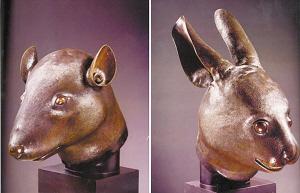 此次将回国的鼠首、兔首,为北京圆明园流失的十二生肖青铜像中的两件