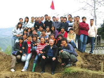 2006年,林向(前排中)在重庆酉阳清源遗址川大考古04级考古发掘实习工地讲授《巴蜀文化的新探索》后,在发掘现场与全体师生合影。