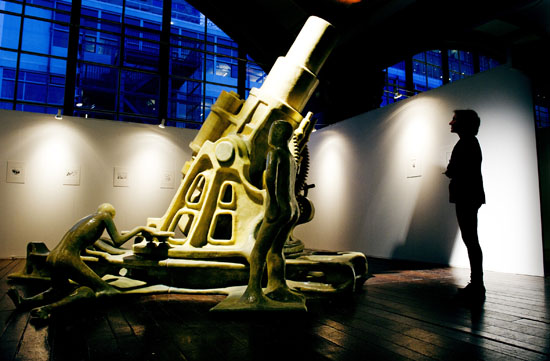 2月9日,游客在荷兰鹿特丹参观鹿特丹国际艺术展。当天,在全球享有盛名的荷兰鹿特丹国际艺术展拉开帷幕。来自世界各地的50多个艺术馆及画廊为本次艺术展带来了包括油画、雕塑、行为艺术等诸多种类的最新艺术作品。