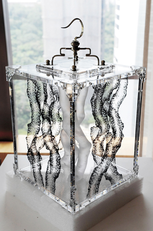 10月3日至7日,第七届香港国际古玩及艺术品博览会将在香港会议展览中心举行,将展出超过5000件艺术品珍品,总计价值超过20亿港元。图为9月8日拍摄的新闻发布会上展示的香港装置艺术家甘志强的作品《林》。新华社记者 宋振平 摄