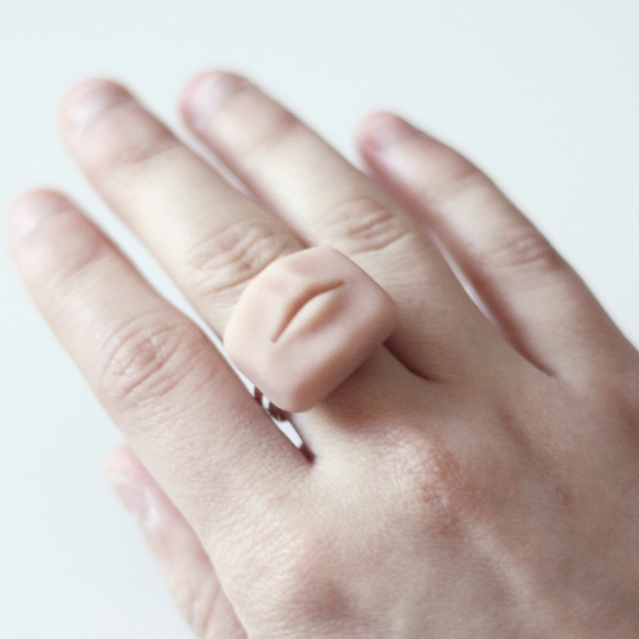 耳朵上多一个小号的耳朵?伦敦设计师Percy Lau的饰品设计,把人的某些器官缩小了用皮肤色的材质制作成耳饰、戒指或是项坠,给人一种说不出的诡异感觉。