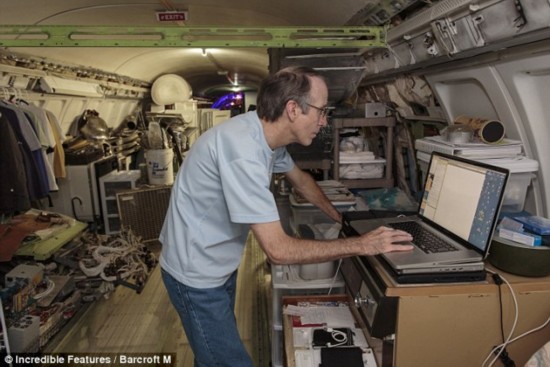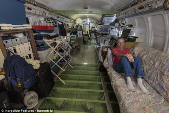 62岁的布鲁斯·坎贝尔生活在俄勒冈州的希尔斯伯勒,曾经是一名机械师。这架客机机身长近47米,布鲁斯买下后花十年对其进行全面改造,把它变成了一个“五脏俱全”的住所,水电等基本设施都不成问题。布鲁斯把客舱成排的坐位卸掉,将它改成卧室、客厅和书房,他用机组人员的厨房做饭,还对飞机上原有的卫生间进行升级,装上了淋浴器。布鲁斯对这个创意倍感自豪,很乐意给前来参观的人当“导游”。