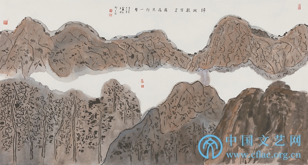 “先生所作,皆‘心画’也。在取景布势上,邵先生的作品均有远近错落、跌宕变化之境,山水丘壑层层相依,连绵如缕,留白之处便是云气生发、天际空远之象,生成一片透彻澄明,从中可见‘澄怀味象’和‘澄怀观道’的追求。”范迪安这样认为。而在中国美协名誉主席靳尚谊看来,邵大箴的作品画面结构有很多新意,同时在笔墨和意境方面亦有现代意识。而他的书法作品风格也极为独特,简淡自然,含蓄内敛,如羚羊挂角,无迹可寻。其中很多作品将书法艺术与自己深厚的艺术理论阐述相融合,呈现出独特的艺术风格:如展览中展出的《邵大箴画语录》《文艺修养——读史和在生活实践中积累》《审美的民族传统和民族特色》等作品正是其学术与艺术在心灵层面的对话,人、书在此构成精神与形式合一的杰作。“他的绘画与写作形成互补,亦是寄托情怀的一种方式。”范迪安说,一如展览正厅悬吊的“文心墨韵”展名,是山水意境、学术论文与邵大箴先生埋首工作的图像的“互补”融合。