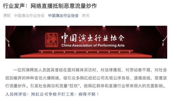 经纪公司恶意炒作刑满释放人员周某,行业协会怒斥:坚决抵制无底线媚俗炒作