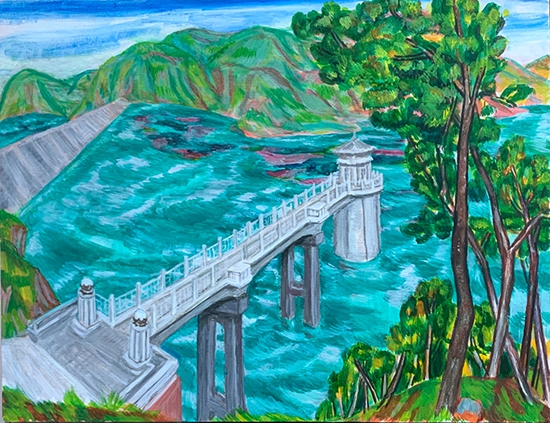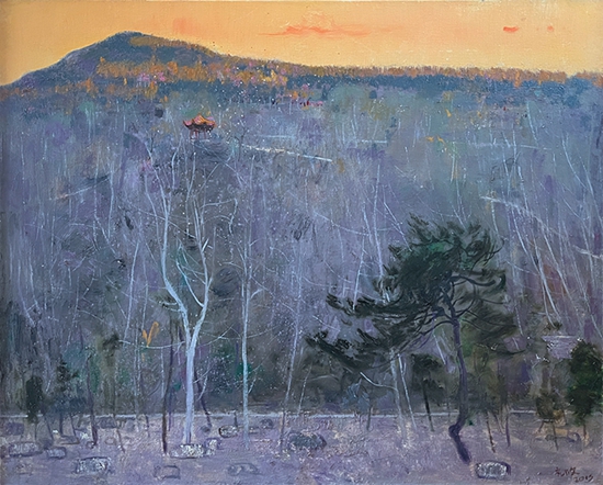 贾涤非《长春净月潭水库(取水塔)》50cmX65cm布面油画 2022