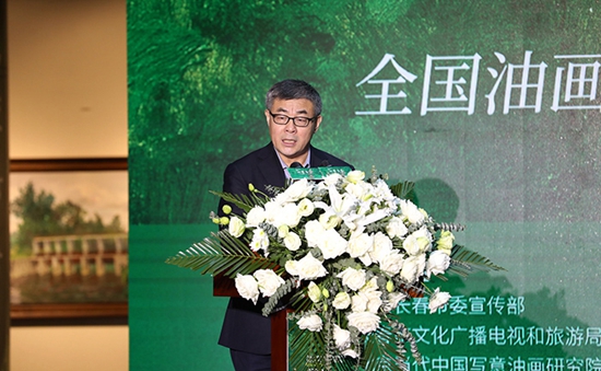 中国美术家协会主席、中央美术学院院长范迪安先生代表中国美术家协会向展览开幕表示热烈祝贺,并在致辞中说:“四季长春这个艺术主题的设立,体现了长春市委市政府在新时代新征程推动艺术繁荣,加强城市文化建设的战略布局。长春拥有丰厚的历史文化遗产,在经济社会发展中,坚持城市文化特色发展,在汽车之城、电影之城、雕塑之城基础上,加强打造油画之城。贯彻落实以艺术的方式传递长春声音,讲好长春故事,赋能长春全面振兴,全方位振兴的理念。一年多来,在王建国先生的努力下,50多位全国著名油画家先后踏访长春,以不同视角描绘了长春的历史街区、城市新貌、生态园林和丰富的当代生活景象,在浓墨重彩中留下了四季长春的风光,表现出城市的蓬勃生机和文化性格。这种聚焦于一个城市的艺术表达,带着特定主题的油画写生创作,即体现出长春市对发展中国油画的积极贡献,也体现出广大油画家立足中国大地,彰显时代精神的文化情怀和艺术追求。”范迪安先生希望长春广大公众在欣赏展览作品时找到自己熟悉的场景,深切感受富足美好家园的亲切和温暖。