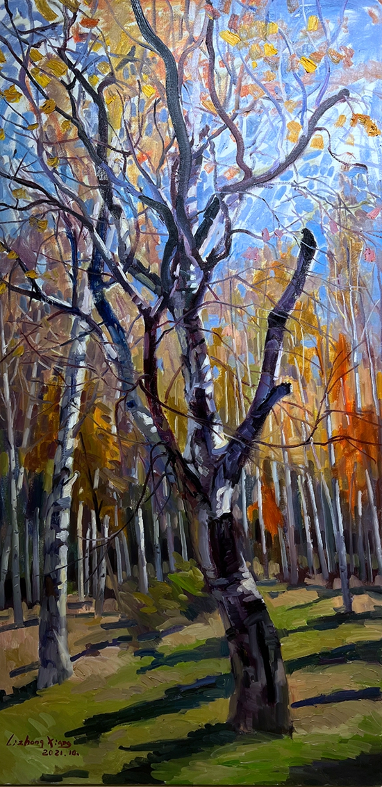 白晓刚《南湖白桦》100cmx200cmm--2021