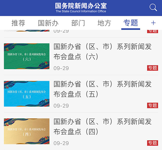 2016年12月,国务院新闻办公室手机APP“国新发布”上线,解读国家的最新政策、发布各部委的最新消息。