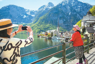 图为中国游客在奥地利哈尔施塔特留影。新华社记者 郭 晨摄