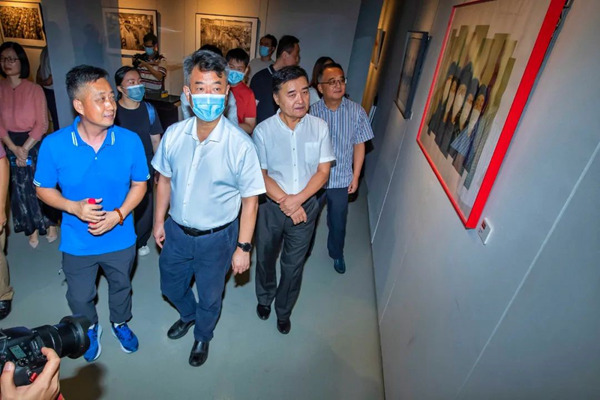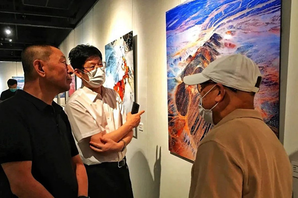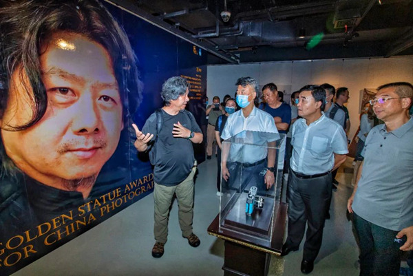 随后中国摄影家协会副主席、企业家摄影协会(深圳)主席王琛、中国摄影家协会副主席、辽宁省摄影家协会主席线云强和中国摄影金像奖获得者陪同张晋文副主席、孙仲勇副书记等嘉宾欣赏展览作品,体验最具冲击力的即视感。中国摄影金像奖获得者王琛、陈茂盛、王景春、李志良现场为与会嘉宾介绍自己展出作品的创作背景与灵感来源。这些作品,从不同视角、用不同手法,艺术再现了建党一百年来我们国家的山川之美、社会之美、时代之美,生动体现了礼赞祖国大好河山、讴歌人们美好生活的时代主题,表达了“文艺两新”讴歌党、讴歌祖国的艺术情怀。