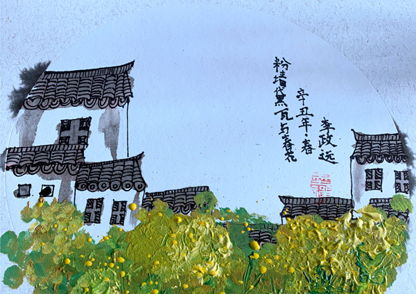 Pinkwalls, black tiles and spring flowers in Hui Style Architecture