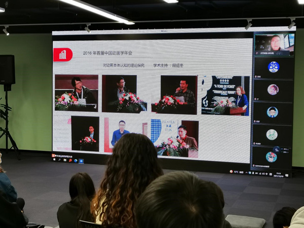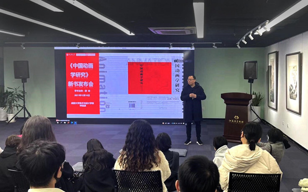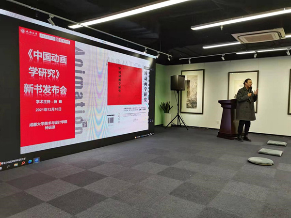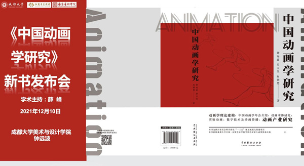 12月10日,第四届南京当代动画艺术文献展暨中国当代动画艺术资料馆&斯图加特国际动画节学术计划活动中,中国动画学年会创始人兼总策划、成都大学钟远波教授在江苏省美术馆分享了自己近年在中国动画学相关领域的学术研究,并对其新著《中国动画学研究》作了现场发布,由于疫情原因,该发布会采取了线下线上结合的方式进行。南京艺术学院传媒学院副院长薛峰教授、湖北美术学院动画与数字艺术学院叶佑天教授分别担任了新书发布会与学术研讨会主持人。
