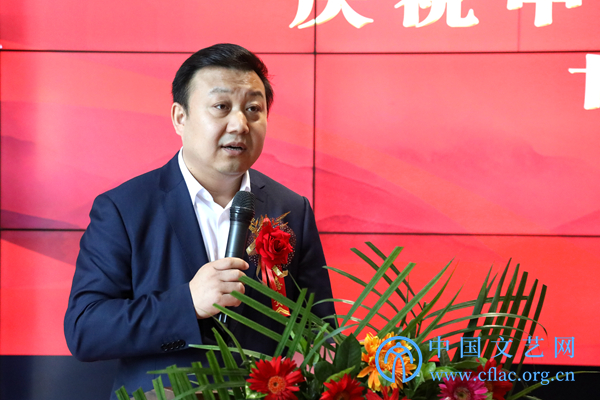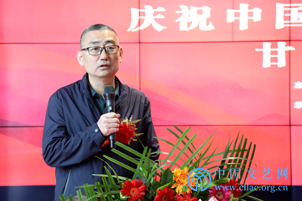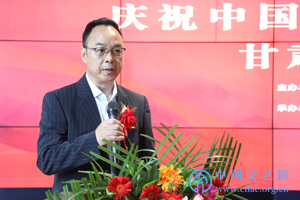 6月11日,“百年历程 辉煌成就—庆祝中国共产党成立100周年甘肃省美术作品展”在兰州举办。图为甘肃文旅产业集团有限公司党委副书记、总经理杨宇宏在开幕式上致辞。 中国文艺网 高森 摄