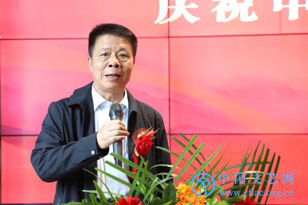 6月11日,“百年历程 辉煌成就—庆祝中国共产党成立100周年甘肃省美术作品展”在兰州举办。图为甘肃省文联党组书记、主席王登渤在开幕式上致辞。 中国文艺网 高森 摄