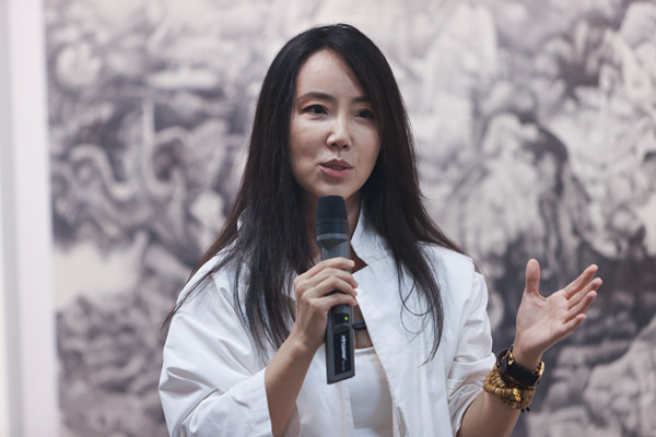 798艺术区管委会书记、主任王春清致辞,左艺术家刘丹