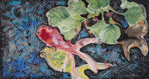 梁缨 荷动知鱼散 97·179cm 纸本设色 2018