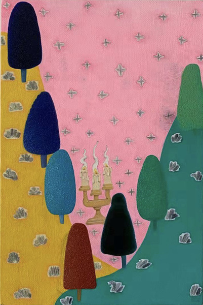 张弓、吴笛笛、付蕊在带有天趣气质的具象绘画中靠拢超验。张弓以重返天真的形式来反照天道人心之间的当代社会。吴笛笛用诗性的感受来驱动花鸟竹石,将它们引向广阔深邃的天地。付蕊描绘着可见的实体空间来暗示不可见的奥秘,在那些绘画无声的叙述中,有沉寂的诗文气质,也仿佛是个人行迹和思绪的“意化”。