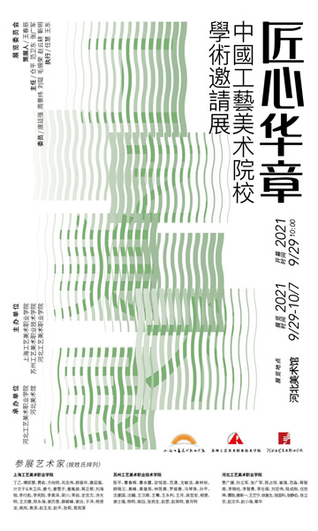 由国内三所顶尖工艺美术院校(上海工艺美术职业学院、苏州工艺美术职业技术学院、河北工艺美术职业学院)联合主办的“匠心华章——中国工艺美术院校学术邀请展”,将于2021年9月29日至10月7日在河北美术馆举办。