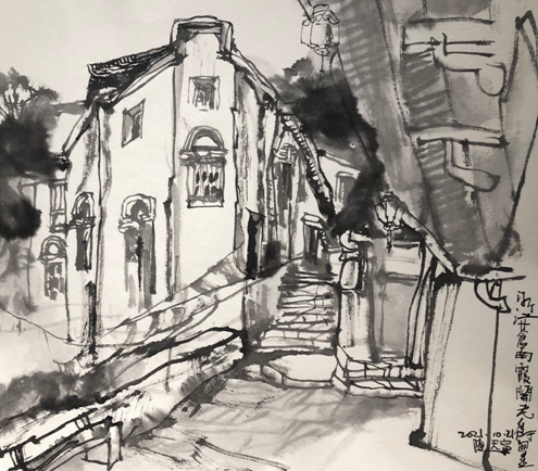 期间,来自全国各地的10位书画名家郭正英、陆天宁、郑山麓、李耀林、李伟、张建豹、周刚、李学伟、阚爱萍、周建朋及苍南本地艺术家王建东、宋玲玲、林成奎 、朱成碧、陈小红、曾松艺及志愿者一行深入苍南碗窑、碇步头、矾山矿区、福德湾、霞关老街、窑洞村、大渔、公婆石等地开展写生活动与交流。