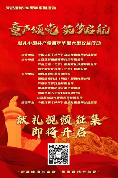 随着青少年综合素质教育的开展,响应新时代号召,力求培养传播中国声音的发声人,少年强则国强,少年智则国智,活动将通过祝福视频录制方式开展,携手广大青少年,立时代新潮、发时代新声,全国征集百位少年,献礼建党百年。展现我国少年儿童的良好精神风貌。