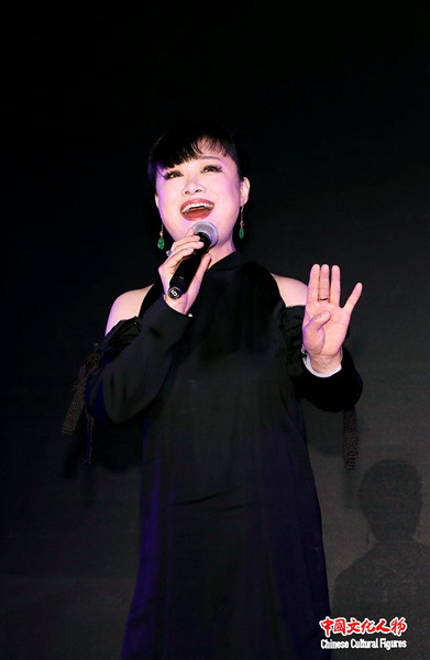 田华在现场声情并茂地朗诵石祥专门为田华老师创作的新诗《旗帜颂》,感染、震撼了现场所有的观众