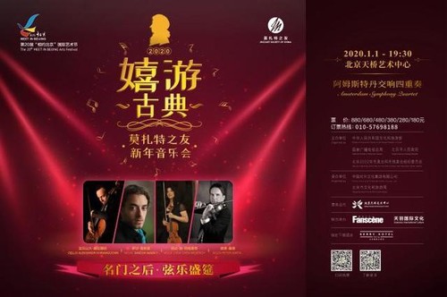 2020年1月1日,“嬉游古典——莫扎特之友”新年音乐会将在北京天桥艺术中心中剧场举办。受“相约北京”国际艺术节邀约,阿姆斯特丹交响四重奏的四位音乐家彼得·桑塔、萨沙·麦斯基、莉达·陈·阿格里奇、亚历山大·赫拉穆欣,将共同演绎莫扎特和他的继承者们的经典作品。