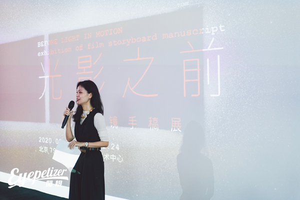 9月25日,由开眼App主办的「光影之前」电影分镜手稿展开幕仪式在798 IOMA爱马思艺术中心举办。开眼CEO王烨女士,视觉艺术家叶锦添,社会各界友人及媒体出席开幕活动。