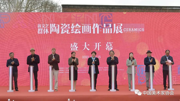 2023年3月15日,2022新文艺群体陶瓷绘画作品展览在中国文联“文艺两新”集聚区(景德镇)实践基地开幕。本次展览由中国文联国内联络部、中国美协、江西省文联、中共景德镇市委、景德镇市人民政府主办,中国文联美术艺术中心、中国美协陶瓷艺委会、中共景德镇市委宣传部、江西省美协、景德镇市文联承办,景德镇市美协、景德镇市新文艺群体协会、景德镇书画院协办。出席开幕式的领导和嘉宾有中国文联国内联络部主任谢力,中国美协分党组书记、驻会副主席、秘书长马锋辉,江西省文联党组书记饶利萍,中共景德镇市委常委、宣传部长林蓉,江西省文联党组成员、副主席邬定忠,中国美协陶瓷艺委会主任、清华大学美术学院陶艺系主任白明,中国美协雕塑艺委会副主任兼秘书长、景德镇陶瓷大学党委副书记、副校长(主持行政工作)吕品昌,中国美协漆画艺委会副主任、江西省美协主席王向阳,中国美协陶瓷艺委会秘书长、山东艺术学院设计学院院长远宏,景德镇陶瓷大学党委委员、副校长吕金泉等。开幕式由景德镇国家陶瓷文化传承创新试验区管委会专职副主任、景德镇陶文旅集团党委书记、董事长刘子力主持。