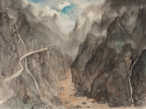 《太行幽谷图4》 50×35cm 金笺水墨 2015年