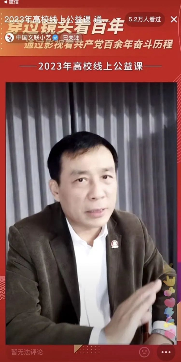 日前,由中国文艺网、中国青年网共同主办的“穿过镜头看百年——通过影视看共产党百余年奋斗历程”2023年高校线上公益课活动在中国文艺网官方抖音账号“中国文联小艺”上成功举行。