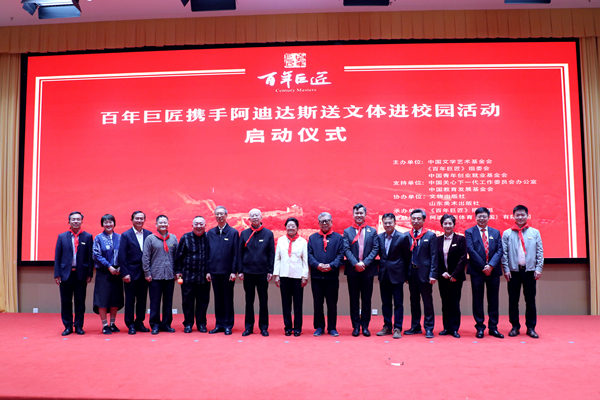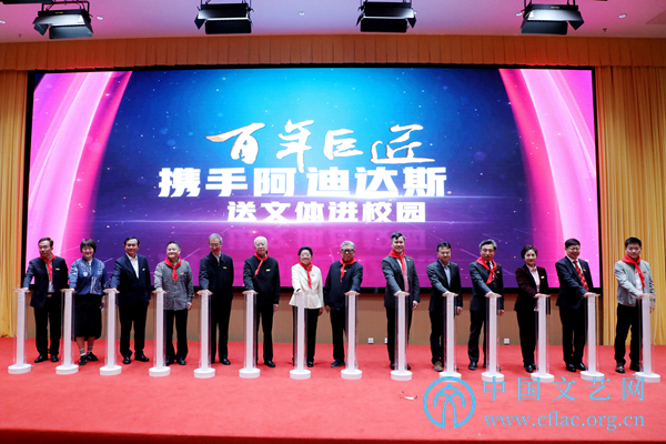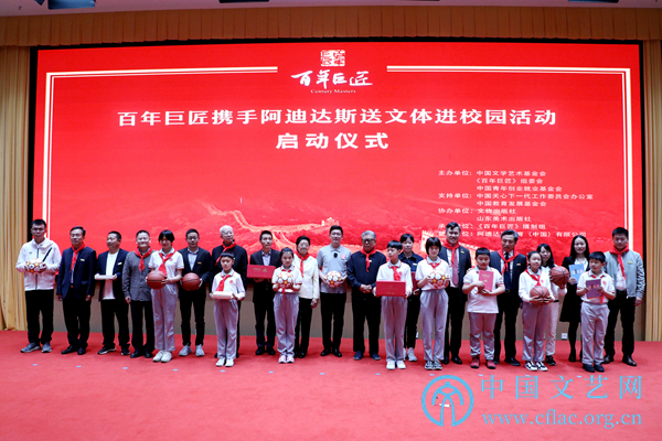 5月7日,由中国文学艺术基金会、《百年巨匠》组委会、中国青年创业就业基金会联合主办的“百年巨匠携手阿迪达斯送文体进校园”活动启动仪式在中央团校举行。此次活动由中国关心下一代工作委员会办公室、中国教育发展基金会作为支持单位,《百年巨匠》摄制组承办,阿迪达斯体育(中国)有限公司赞助支持。