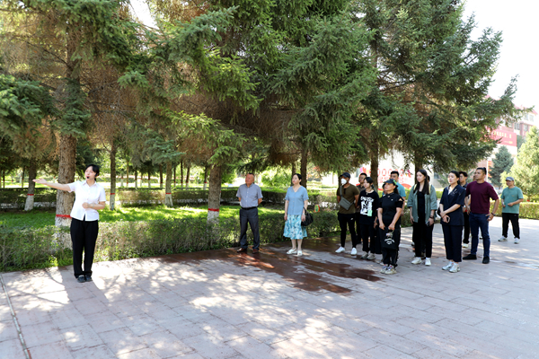随后,采风团又来到周恩来总理纪念碑,集体瞻仰并认真参观纪念馆,聆听讲解。珍贵的影像、图文、实物等,让大家了解到周总理心系石河子的深厚情怀。1965年7月,周恩来总理和陈毅副总理在出访归国途中来到石河子,亲切接见兵团干部职工和团场上海支边青年,提出了“出身不由己,道路可选择”的重要论断,为推动新疆各项事业的发展和广大知识青年安心边疆、建设边疆起到了促进作用。