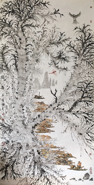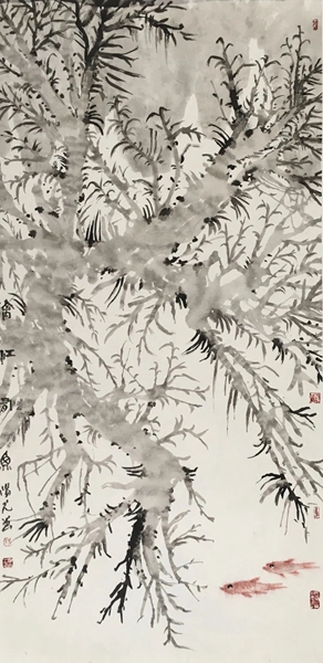 《漓江有鱼》 纸本水墨 136cm×60cm 2023年