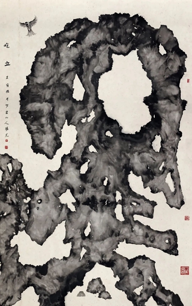《屹立》 纸本水墨 300cm×200cm 2021年