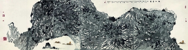《漓江岚韵》 纸本水墨 700cm×200cm 2021年