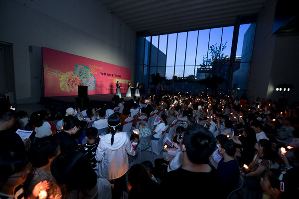 在本次展览开幕式现场,500余盏小桔灯共同点亮“美术馆之夜”活动。来自太仓的500多个家庭的1000多位观众,因为“妈妈”这个主题聚集在美术馆里,在朗诵、合唱、即兴表演等活动中共同度过了一个充满温暖和爱的夜晚。