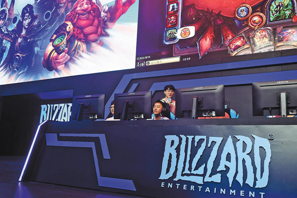 Visitors play games developed by Blizzard at ChinaJoy in Shanghai on Aug 3. LONG WEI/FOR CHINA DAILY