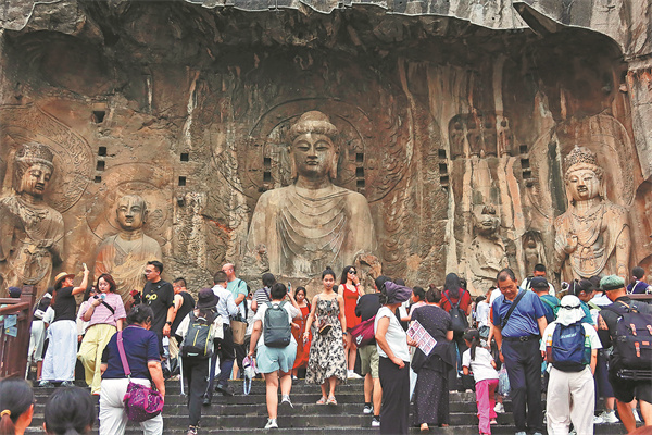 Longmen Grottoes in Luoyang, Henan province, attracts visitors, in July.[Photo provided by Jiang Dong/China Daily]