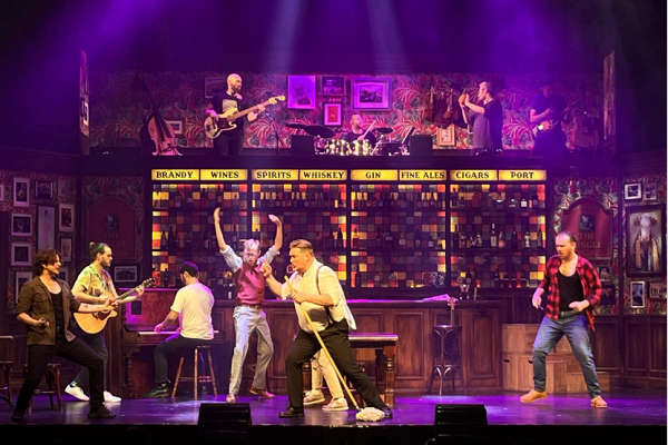 Set in a traditional British or Irish pub, this Oliver Award-nominated show features nine male multi-instrumentalist performers who tap dance, sing acapella, and play live instruments like piano, guitar and ukulele, while engaging in spoken word monologues.