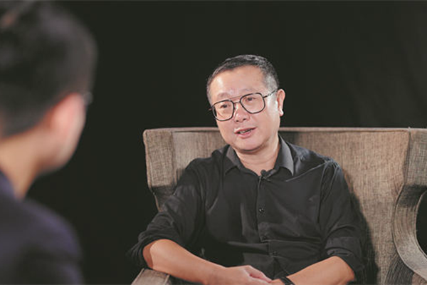 Liu Cixin answers questions at a group interview. [Photo provided to China Daily]