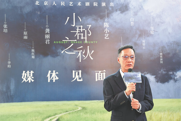 Feng Yuanzheng, president of Beijing People's Art Theatre announces, the upcoming new stage production of the Pulitzer-winning play. [Photo provided to China Daily]