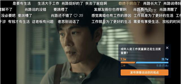 可以发现,现实题材与互动技术之间相互蕴含着“解局”与“破圈”之道。而今天智能互动技术中的审美对立、话语割裂和意义空洞等倾向,也得以在文艺作品对现实社会与真实生活的表达中实现文化价值。爱奇艺出品的现实题材剧《亲爱的小孩》改编自真实事件,关注婚姻、育儿等问题的现实痛点。剧中不乏“坐月子有必要请月嫂吗?”“男人出轨承认错误可以被原谅么?”“你会选择为救孩子和前任复合吗?”等敏感话题情节,此时,IVOS投票系统有效地组织起了观众对这些敏感话题的讨论。通过剧情与互动议程的设置,弹幕体现出了一种集体道德自觉,曾经因“磕CP”而分裂的大众话语与审美倾向由此重新获得了团结。