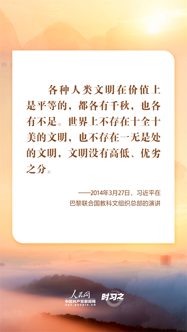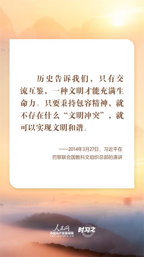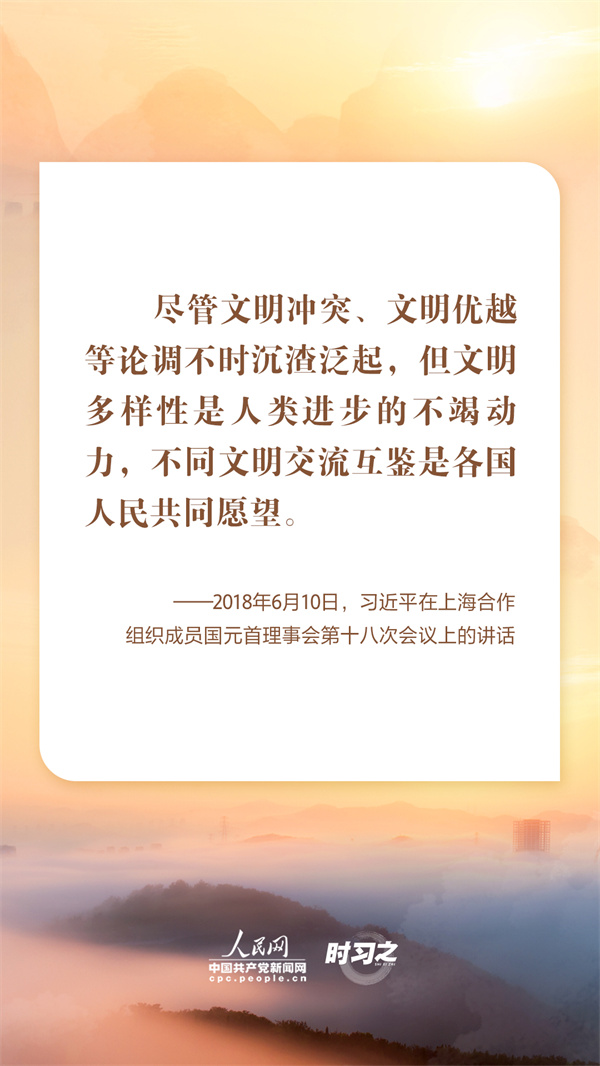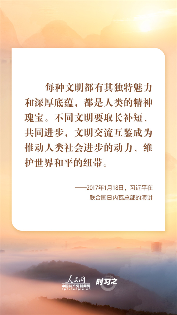 习近平总书记在主持中共中央政治局第三十九次集体学习时指出,“中华文明自古就以开放包容闻名于世,在同其他文明的交流互鉴中不断焕发新的生命力。”扎根于中华文明沃土的文明观,蕴涵着对全人类共同价值的深刻思考。在多个重要场合,习近平积极倡导不同文明交流互鉴、和谐共生,为促进人类文明永续进步、开创更加美好的未来阐明中国态度。