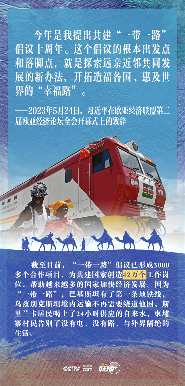 “今年是我提出共建‘一带一路’倡议十周年。这个倡议的根本出发点和落脚点,就是探索远亲近邻共同发展的新办法,开拓造福各国、惠及世界的‘幸福路’。”5月24日,习近平主席在出席欧亚经济联盟第二届欧亚经济论坛全会开幕式并致辞时指出。