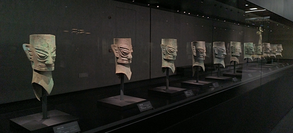 △三星堆博物馆展出的青铜人头像。(总台央视记者范凯拍摄)