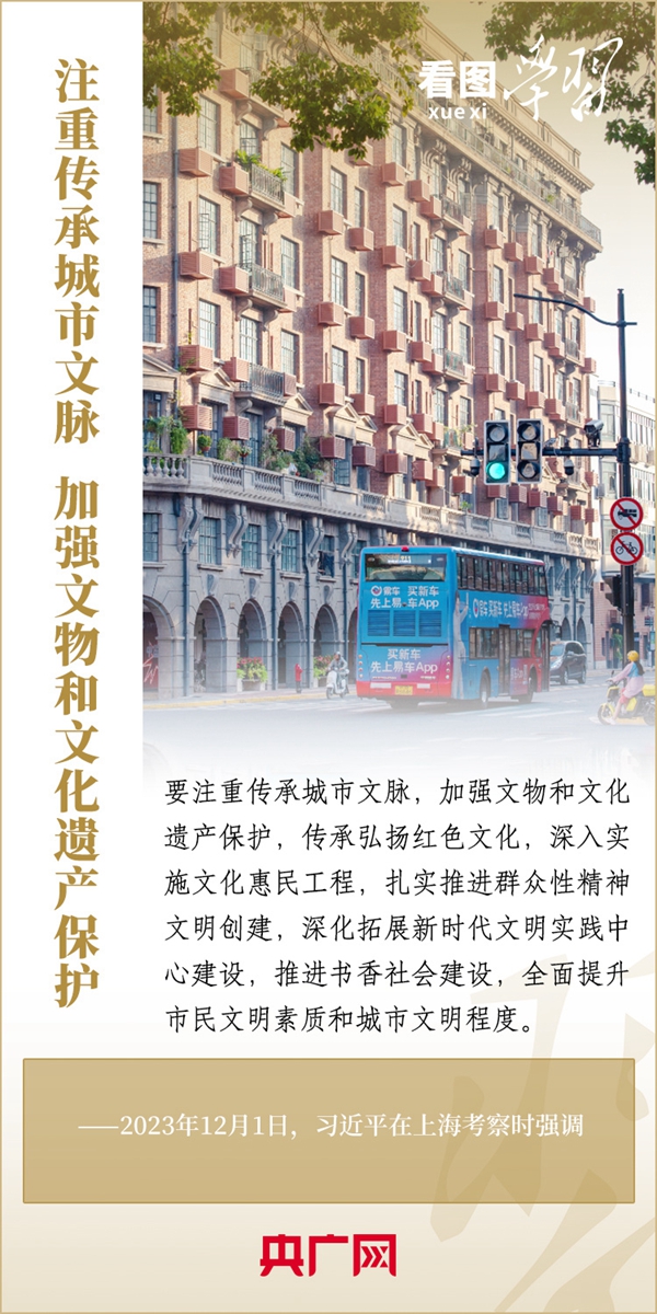 历史是一座城市的记忆,文化是一座城市的灵魂。守护城市的历史文化,就是守护城市的生命力。习近平总书记在历次国内考察中多次作出深刻阐述。近日,总书记在上海考察时,要求上海加快建成具有世界影响力的社会主义现代化国际大都市,并强调上海要注重传承城市文脉,加强文物和文化遗产保护。一起来学习!